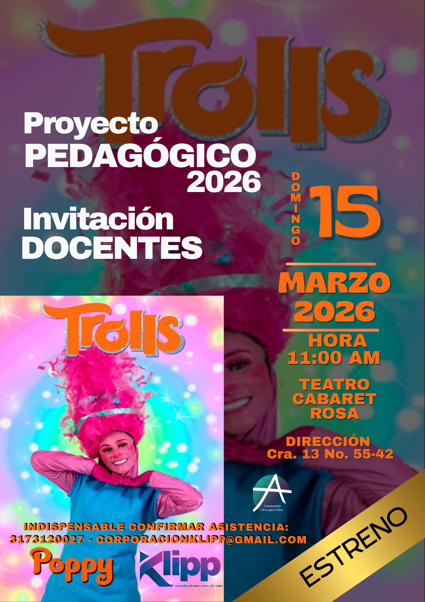 Klipp Engánchate con el arte invita a los docentes a las Funciones de ESTRENO en el marco del día del idioma a: JULIETA y ROMEO y TROLLS.
